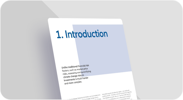 1. Introduction Unlike traditional financial risk factors, such as market price risks, assessing and quantifying climate change risks in investments is much harder and more complex. Unlike traditional financial risk factors, such as market price risks, assessing and quantifying climate change risks in investments is much harder and more complex. The “failure of climate change mitigation and adaption” is a pressing long-term risk according to the World Economic Forum’s Global Risks Report 2021. The Intergovernmental Panel on Climate Change (IPCC) reports show that greenhouse gas (GHG) emissions need to be strictly limited by 2050 to keep climate change well below 2°C above pre-industrial levels. There has also been strong progress to curb global warming and climate change, notably at the 21st Conference of the Parties, where global government leaders signed the Paris Agreement that aims to pursue limiting the temperature increase to 1.5°C above pre-industrial levels. Nevertheless, without a sharp decline in GHG emissions by 2030, global warming will surpass 1.5°C in the following decades, given the current level of international climate ambition. Thus, climate change is a serious issue for all our stakeholders. At Allianz Global Investors, climate risks are an important consideration when assessing potential investments. As an active investor, we can help to find innovative ways to allocate new capital – and reallocate existing capital – towards a climate transition that meets the Paris Agreement goals. We are a member of the Net Zero Asset Manager Initiative to act on the present and future climate demands jointly with other investment industry members. This is alongside our parent company, Allianz SE, which committed to decarbonise its asset owner portfolio as a founding member of the Net Zero Asset Owner Alliance. In recent years, we have laid strong foundations for our climate change strategy by supporting and implementing the Task Force on Climate-related Financial Disclosures (TCFD) recommendations, as well as developing an enhanced systematic approach to investee engagement on climate. We are also supportive of climate efforts by Allianz SE, which has further strengthened its approach to exiting coal-based business models due to climate risks, and has committed as an investor to the Science Based Target initiative (SBTi) among many other efforts. 2