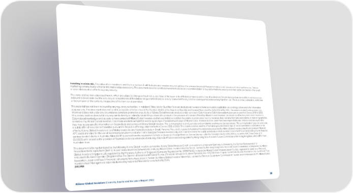 Investing involves risk. The value of an investment and the income from it will fluctuate and investors may not get back the principal invested. Past performance is not indicative of future performance. This is a marketing communication. It is for informational purposes only. This document does not constitute investment advice or a recommendation to buy, sell or hold any security and shall not be deemed an offer to sell or a solicitation of an offer to buy any security. The views and opinions expressed herein, which are subject to change without notice, are those of the issuer or its affiliated companies at the time of publication. Certain data used are derived from various sources believed to be reliable, but the accuracy or completeness of the data is not guaranteed and no liability is assumed for any direct or consequential losses arising from their use. The duplication, publication, extraction or transmission of the contents, irrespective of the form, is not permitted. This material has not been reviewed by any regulatory authorities. In mainland China, it is for Qualified Domestic Institutional Investors scheme pursuant to applicable rules and regulations and is for information purpose only. This document does not constitute a public offer by virtue of Act Number 26.831 of the Argentine Republic and General Resolution No. 622/2013 of the NSC. This communication’s sole purpose is to inform and does not under any circumstance constitute promotion or publicity of Allianz Global Investors products and/or services in Colombia or to Colombian residents pursuant to part 4 of Decree 2555 of 2010. This communication does not in any way aim to directly or indirectly initiate the purchase of a product or the provision of a service offered by Allianz Global Investors. Via reception of his document, each resident in Colombia acknowledges and accepts to have contacted Allianz Global Investors via their own initiative and that the communication under no circumstances does not arise from any promotional or marketing activities carried out by Allianz Global Investors. Colombian residents accept that accessing any type of social network page of Allianz Global Investors is done under their own responsibility and initiative and are aware that they may access specific information on the products and services of Allianz Global Investors. This communication is strictly private and confidential and may not be reproduced. This communication does not constitute a public offer of securities in Colombia pursuant to the public offer regulation set forth in Decree 2555 of 2010. This communication and the information provided herein should not be considered a solicitation or an offer by Allianz Global Investors or its affiliates to provide any financial products in Brazil, Panama, Peru, and Uruguay. In Australia, this material is presented by Allianz Global Investors Asia Pacific Limited (“AllianzGI AP”) and is intended for the use of investment consultants and other institutional/professional investors only, and is not directed to the public or individual retail investors. AllianzGI AP is not licensed to provide financial services to retail clients in Australia. AllianzGI AP is exempt from the requirement to hold an Australian Foreign Financial Service License under the Corporations Act 2001 (Cth) pursuant to ASIC Class Order (CO 03/1103) with respect to the provision of financial services to wholesale clients only. AllianzGI AP is licensed and regulated by Hong Kong Securities and Futures Commission under Hong Kong laws, which differ from Australian laws. This document is being distributed by the following Allianz Global Investors companies: Allianz Global Investors GmbH, an investment company in Germany, authorized by the German Bundesanstalt für Finanzdienstleistungsaufsicht (BaFin); Allianz Global Investors (Schweiz) AG; in HK, by Allianz Global Investors Asia Pacific Ltd., licensed by the Hong Kong Securities and Futures Commission; in Singapore, by Allianz Global Investors Singapore Ltd., regulated by the Monetary Authority of Singapore [Company Registration No. 199907169Z]; in Japan, by Allianz Global Investors Japan Co., Ltd., registered in Japan as a Financial Instruments Business Operator [Registered No. The Director of Kanto Local Finance Bureau (Financial Instruments Business Operator), No. 424], Member of Japan Investment Advisers Association, the Investment Trust Association, Japan and Type II Financial Instruments Firms Association; in Taiwan, by Allianz Global Investors Taiwan Ltd., licensed by Financial Supervisory Commission in Taiwan; and in Indonesia, by PT. Allianz Global Investors Asset Management Indonesia licensed by Indonesia Financial Services Authority (OJK). 2851958 Allianz Global Investors Diversity, Equity and Inclusion Report 2022 38