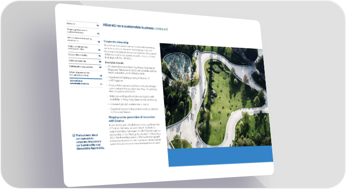 Welcome 02 AllianzGI as a sustainable business continued Shaping pathways to a sustainable future 03 What sustainable investing Corporate citizenship means to us 04 Beyond our core operations and sustainable investing, Acting on climate risks we seek to use our resources and employee skills to and opportunities 05 have a positive impact on our communities. We support Sustainable investing 06 initiatives local to our operations with a focus on those that align with the UN SDGs. Active stewardship 08 Examples include: Collaborative engagement 09 – Childr en’s charities in Germany, Hong Kong, Japan, Singapore, Taiwan and the US with priorities such as Influencing companies health, education, and children’s rights through proxy voting 10 – Or ganisations fighting poverty in France, US AllianzGI as a and Singapore sustainable business 11 – Pr ojects helping to provide food to disadvantaged communities in France, Germany, Peru, Hong Kong, Italy, Singapore and the UK – Initiatives working with childr en and adults with disabilities in Hong Kong, Japan and Luxembourg – Charities fighting homelessness in the US – Or ganisations promoting environmental protection in China and Taiwan. Shaping a new generation of innovation with Enactus In our second year of collaboration as a gold member of Enactus Germany, we worked with students to support activities that target the UN SDGs through our Find out more about sponsorship of the “Start-up Accelerator” in November our approach to 2021. We share the passion of the students engaged corporate citizenship in in Enactus networks on their journey to create a better our Sustainability and world through innovation and entrepreneurial action. Stewardship Report 2021.
