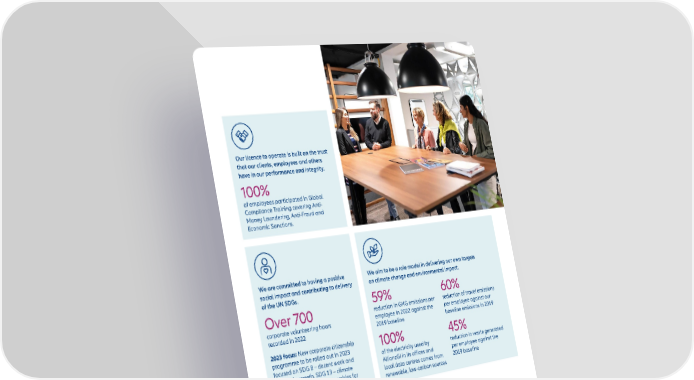 Our licence to operate is built on the trust that our clients, employees and others have in our performance and integrity. 100% of employees participated in Global Compliance Training covering Anti- Money Laundering, Anti-Fraud and Economic Sanctions. We are committed to having a positive We aim to be a role model in delivering our own targets social impact and contributing to delivery on climate change and environmental impact. of the UN SDGs. 59% 60% Over 700 reduction in GHG emissions per reduction of travel emissions corporate volunteering hours employee in 2022 against the per employee against our recorded in 2022 2019 baseline baseline emissions in 2019 2023 focus: New corporate citizenship 100% 45% programme to be rolled out in 2023 focused on SDG 8 – decent work and of the electricity used by reduction in waste generated economic growth, SDG 13 – climate AllianzGI in its offices and per employee against the action, and SDG 17 – partnerships for local data centres comes from 2019 baseline the goals renewable, low-carbon sources