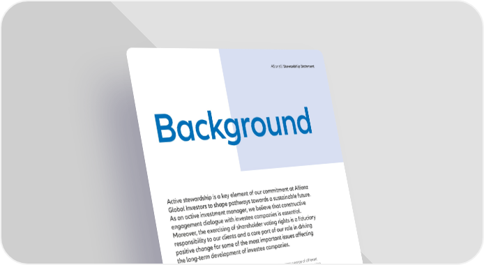AllianzGI Stewardship Statement Background Active stewardship is a key element of our commitment at Allianz Global Investors to shape pathways towards a sustainable future. As an active investment manager, we believe that constructive engagement dialogue with investee companies is essential. Moreover, the exercising of shareholder voting rights is a fiduciary responsibility to our clients and a core part of our role in driving positive change for some of the most important issues affecting the long-term development of investee companies. This statement sets out our engagement policy for the long term across a range of different and stewardship approach, including the steps investment strategies, and pay close attention we take to meet regulatory obligations and the to growth prospects, return on capital, good principles of certain Stewardship Codes and governance, market positioning and quality of codes of best practices that apply in the franchises. Furthermore, we believe that material jurisdictions in which we operate in Europe, environmental and social considerations are North America and Asia. crucial to the success of a company looking for long-term outperformance. Allianz Global Investors refers to the global investment management business, which Consistent with our investment philosophy and operates under the marketing name Allianz approach, we routinely engage in dialogue with Global Investors (AllianzGI) through affiliated investee companies and seek to proactively entities worldwide. AllianzGI is an active present a viewpoint, seek change where investment manager serving institutional and necessary, and monitor the results of our retail clients around the world. The business is engagement. Our investment views are influenced diversified across equity, fixed-income, multi- by the outcomes of these engagements and are asset and alternative strategies and diversified linked to the proxy voting process, forming a by region. consistent stewardship approach. AllianzGI has a strong investment culture based on bottom-up, fundamental research. We invest 3