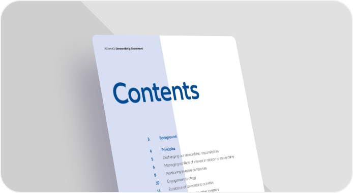 Contents 3 Background 4 Principles 5 Discharging our stewardship responsibilities 6 Managing conflicts of interest in relation to stewardship 8 Monitoring investee companies 10 Engagement strategy 11 Escalation of stewardship activities 12 Acting collectively with other investors 13 Proxy voting 15 Reporting on stewardship activities 16 Ass urance 16 Contact AllianzGI Stewardship Statement 2
